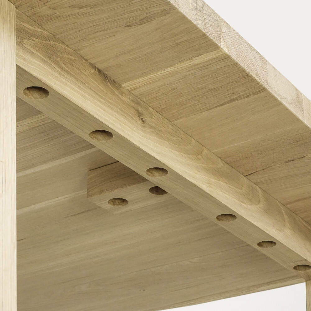 Masīvkoka (ozola) galda kāju komplekts Trapece (komplektā 2 gab.) atbalsta arī smagas galda virsmas un ar pareizu kopšanu kalpos ilgi. Redzamie mezgli un raksti radušies materiāla dabiskuma dēļ – katrs komplekts ir ļoti unikāls.