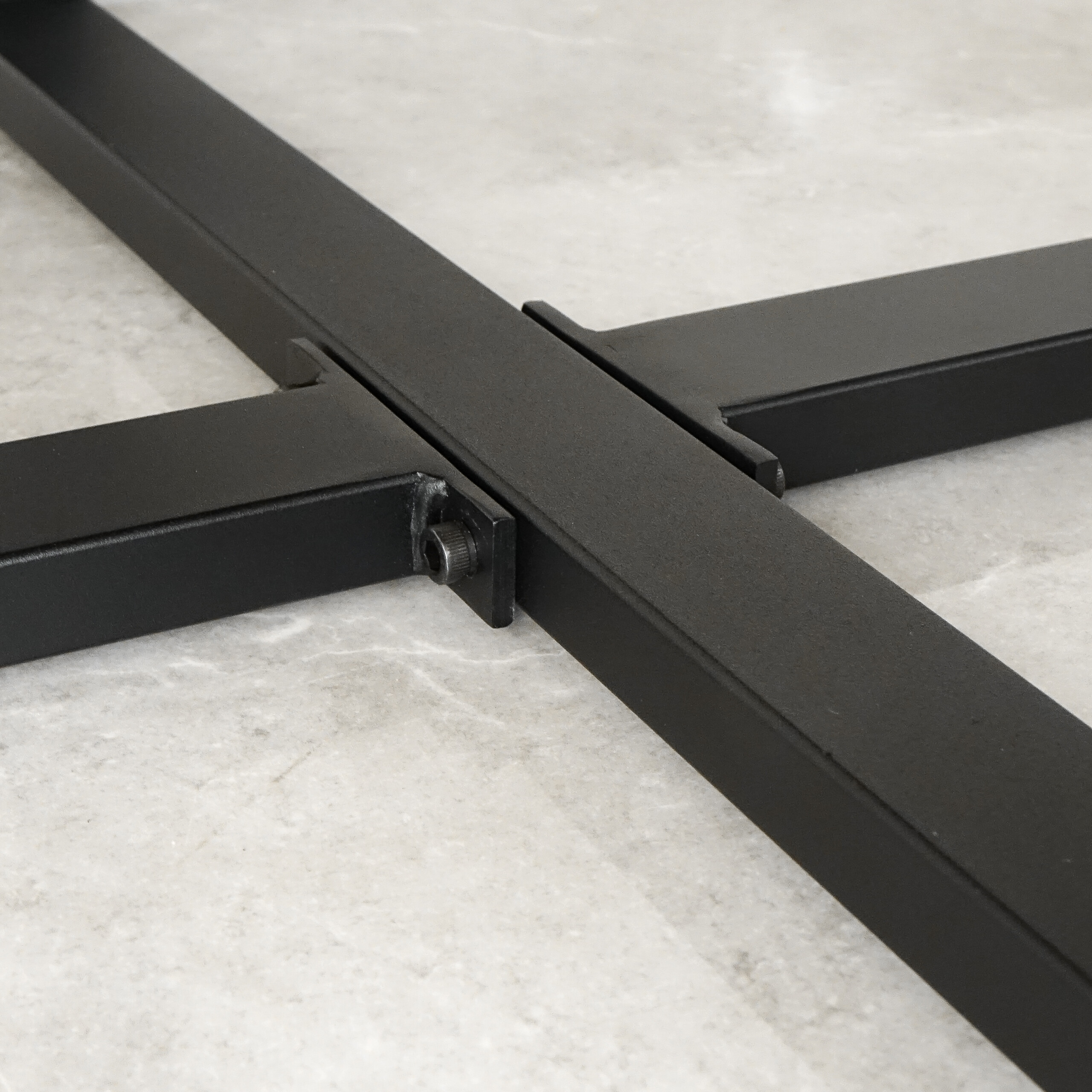 Kāju iekšpusē ir iepriekš izurbti caurumi, kas ļoti atvieglo uzstādīšanu. Ir jāsamontē galda kāja.